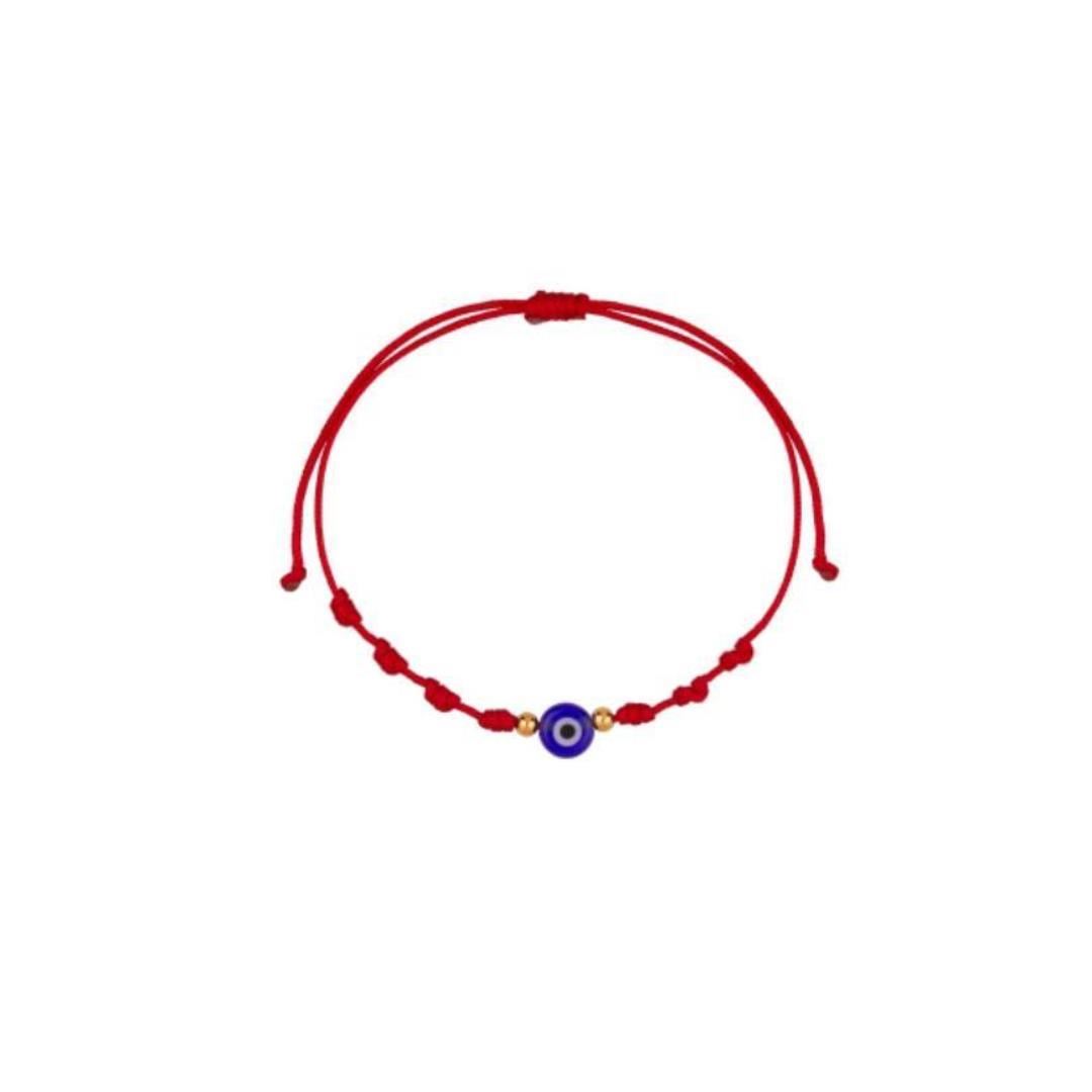 Pulsera 7 nudos Ojo protector mini nylon en oro amarillo 18kt