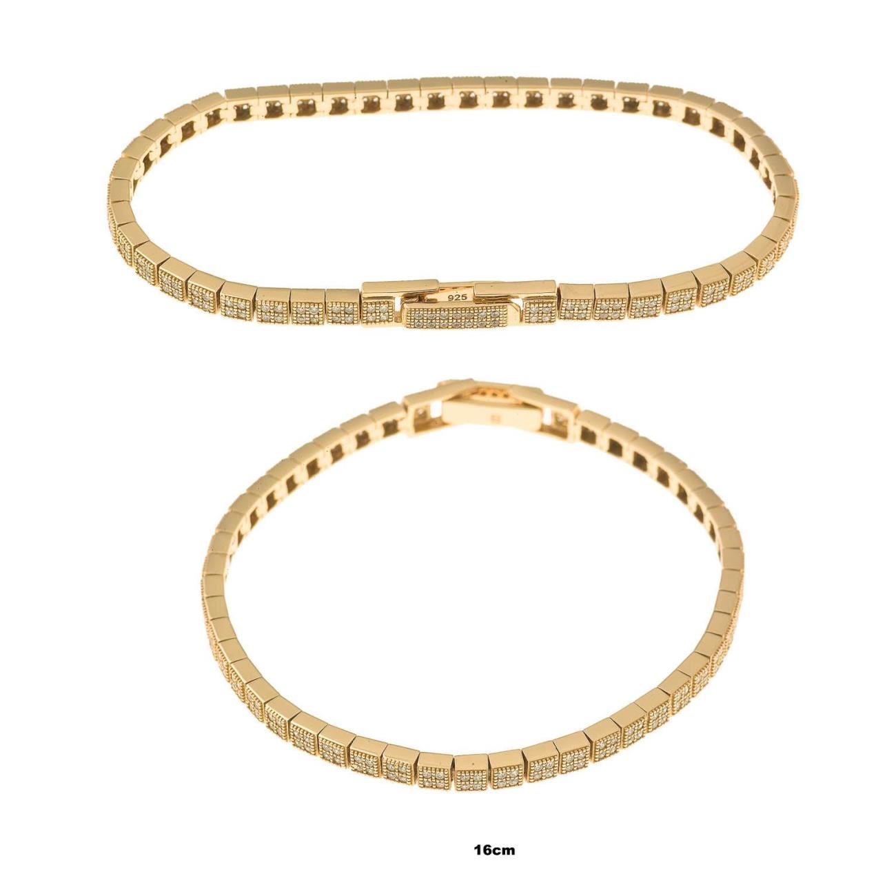 Pulsera plata chapado dorado cuadrados circonitas blancas brillantes