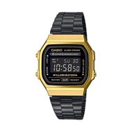 Reloj digital retro negro y dorado