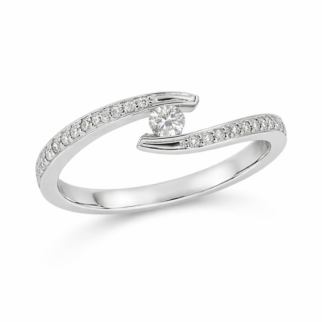 Sortija tipo alianza fabricada en oro blanco de 18 quilates, decorada con una delicada línea de diamantes engastados que aportan un brillo continuo y elegante. Su diseño fino y minimalista la convierte en una joya perfecta para llevar sola o combinada con otras sortijas, ideal tanto como anillo de compromiso discreto como para uso diario.