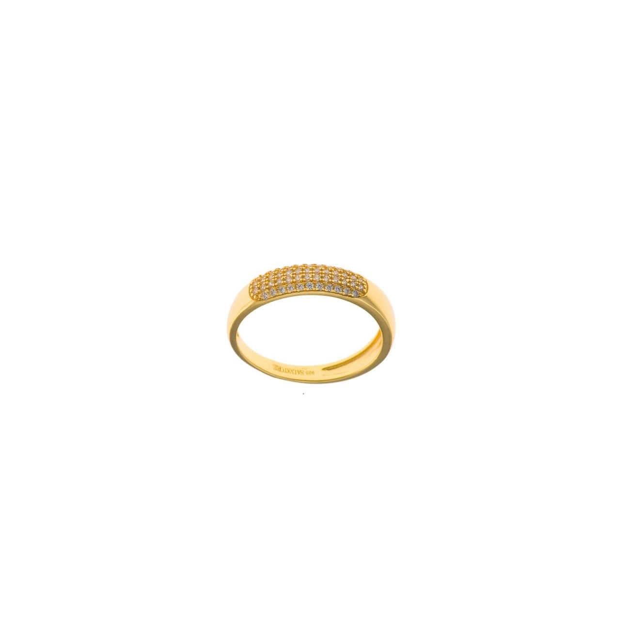 Sortija plata chapado dorado circonitas blancas brillantes