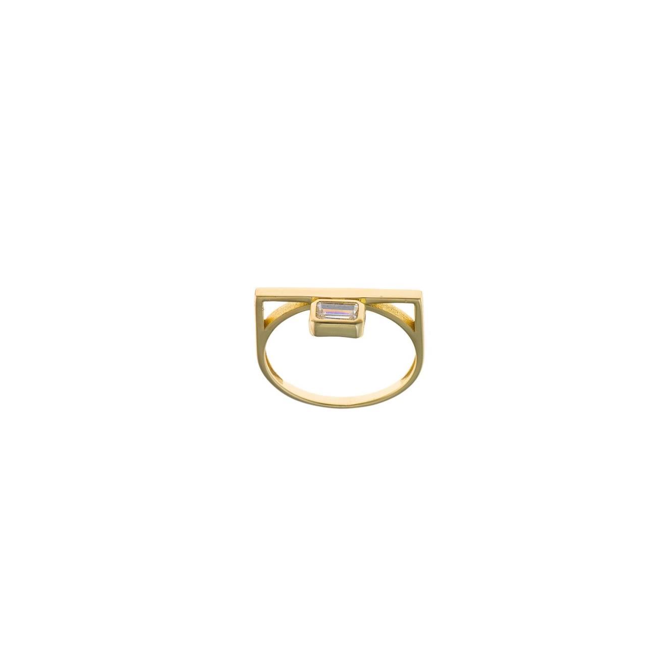 Sortija plata chapado dorado linea lisa circonita blanca rectangular
