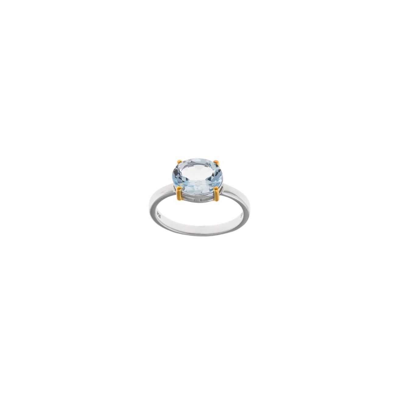 Sortija plata rodio topacio azul ovalo garras chapado dorado