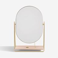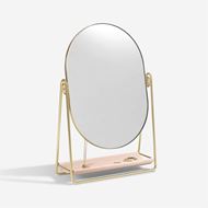 Con un gran espejo en la parte delantera, colocado sobre un marco de metal que permite que el espejo se incline según el ángulo que necesites. También hay ganchos para joyas ocultos en el reverso para mantener sus joyas organizadas sin esfuerzo.