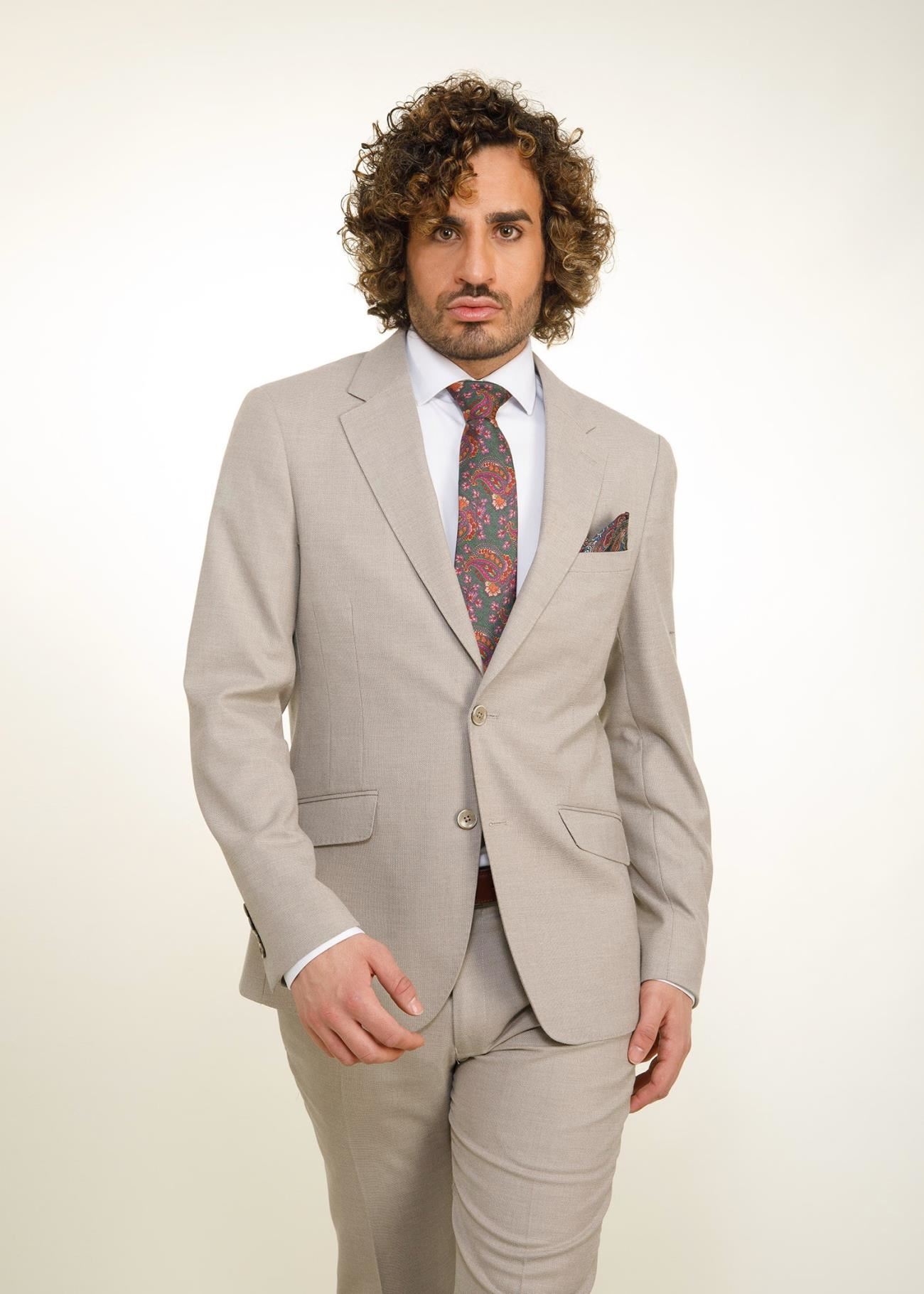 El tono tostado lo convierte en una alternativa versátil al clásico azul marino o gris, aportando frescura y distinción. Fácil de combinar con camisas blancas o de tonos claros, y con corbatas estampadas o lisas, es una opción atemporal y de tendencia.